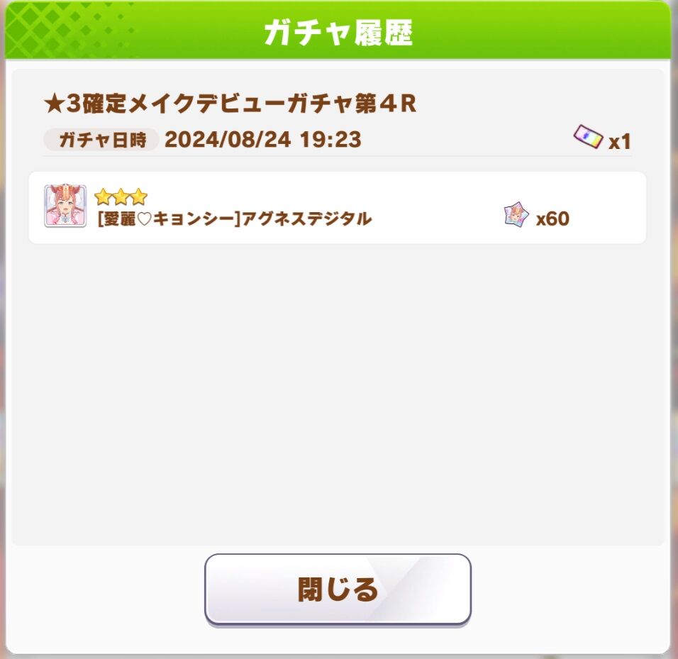 ■2024/8/30 レジェンドフェス天井結果(37th)