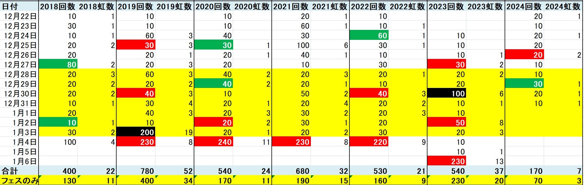 既に現段階で回数・虹数共に最低なので