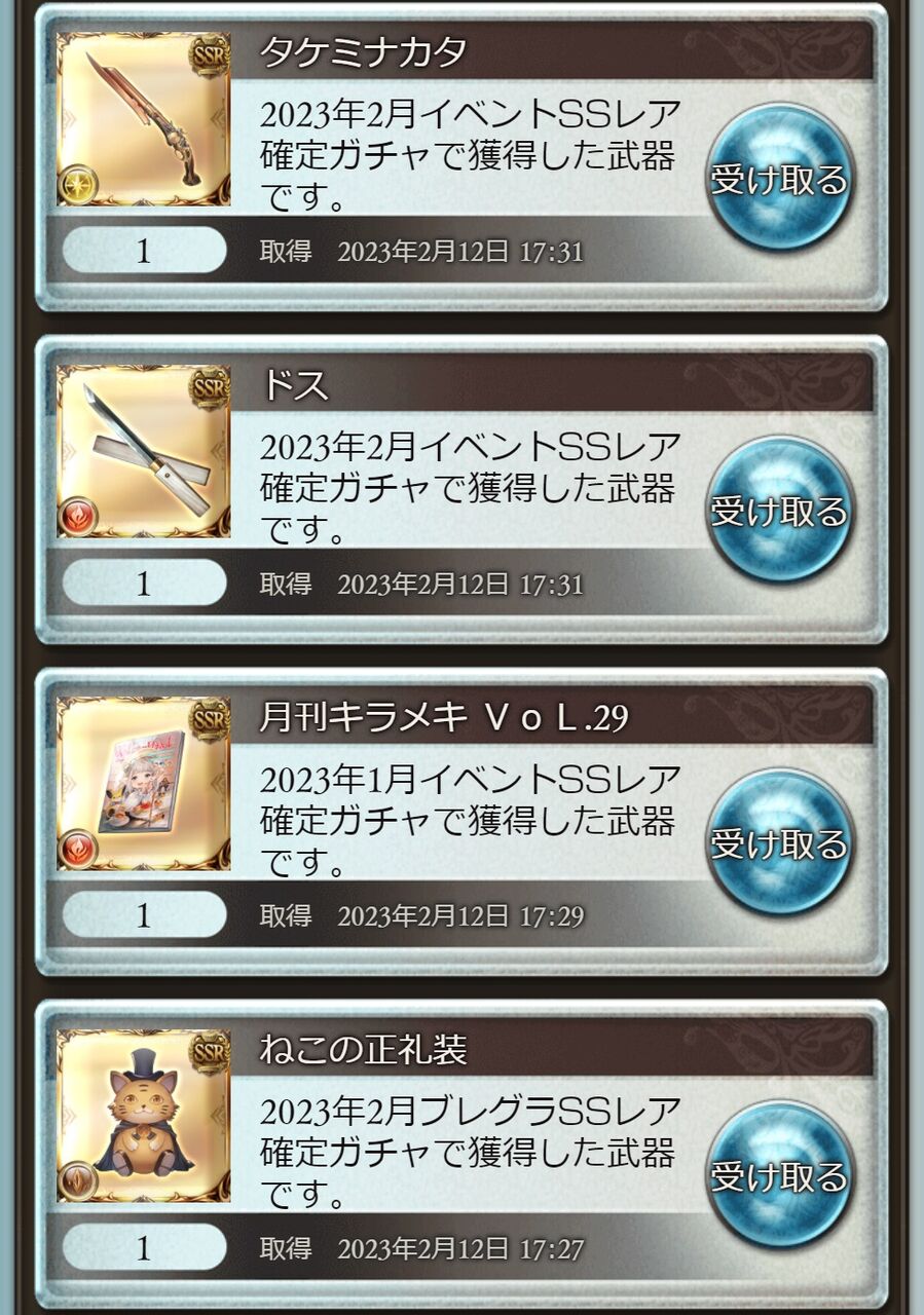 かなり貰えたね今回。コラボ万歳!