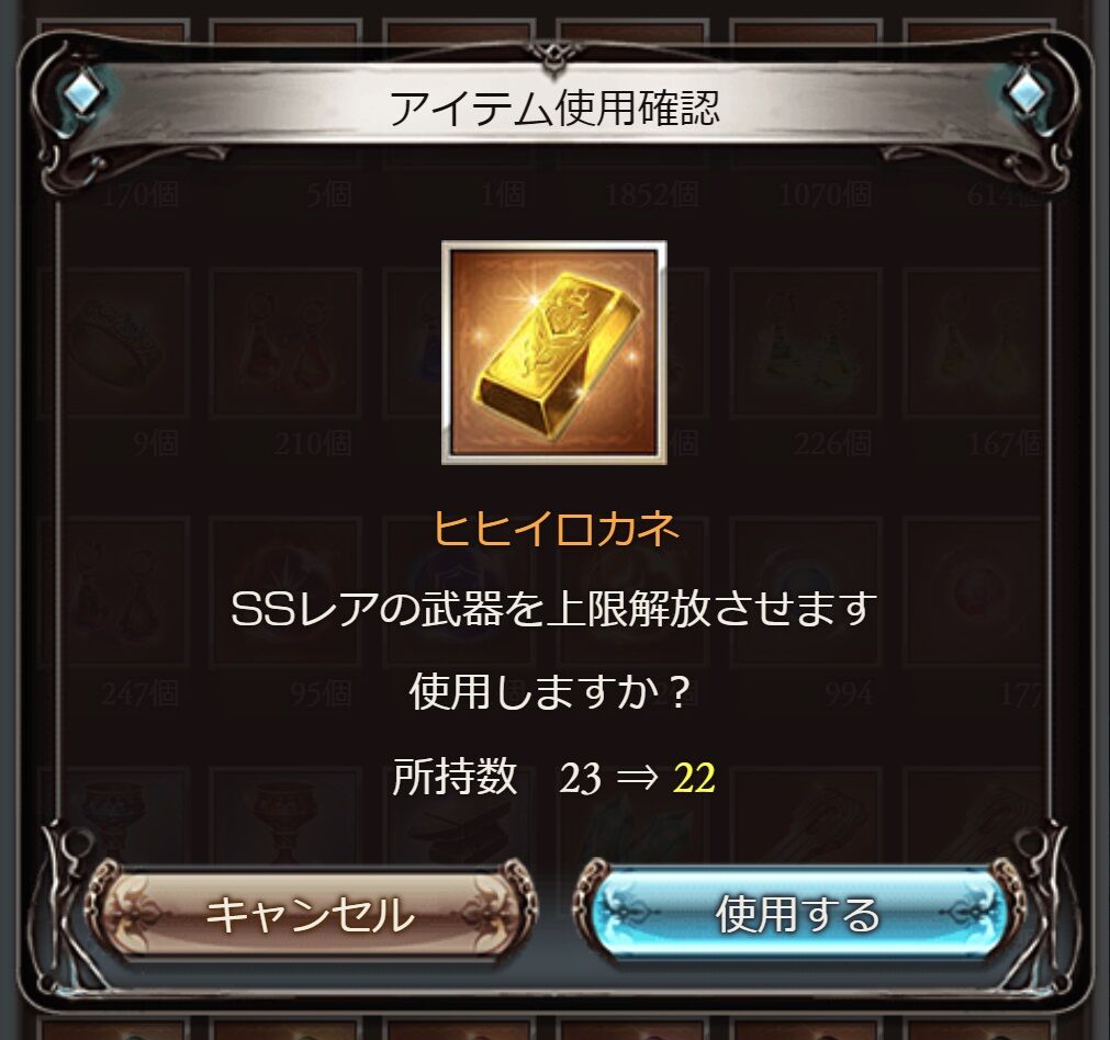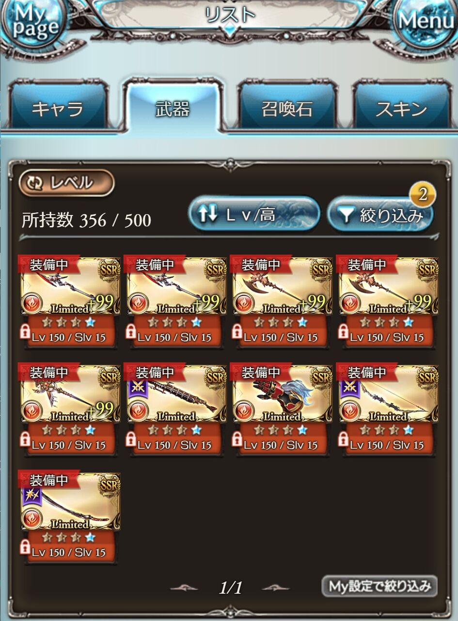 これで塩漬けリミ武器はガブ短2本目以外