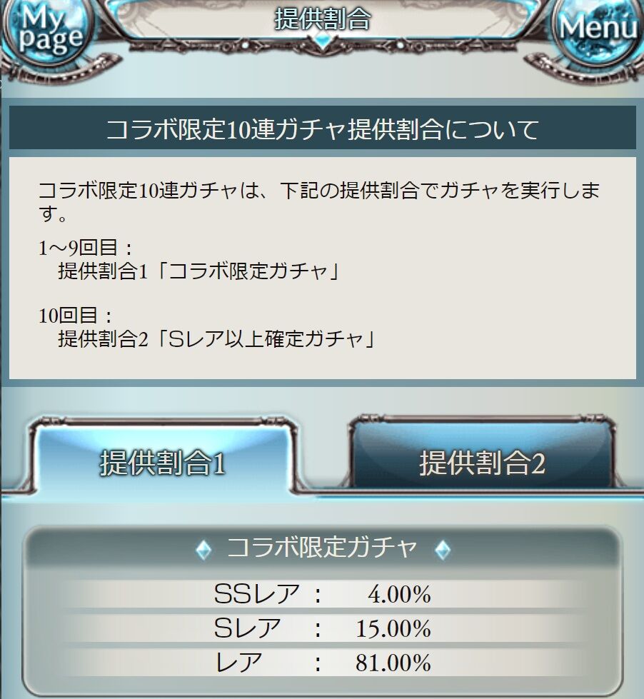 すまん理解した提供割合2にSレア以上確定ガチャ4%って書いてあるから