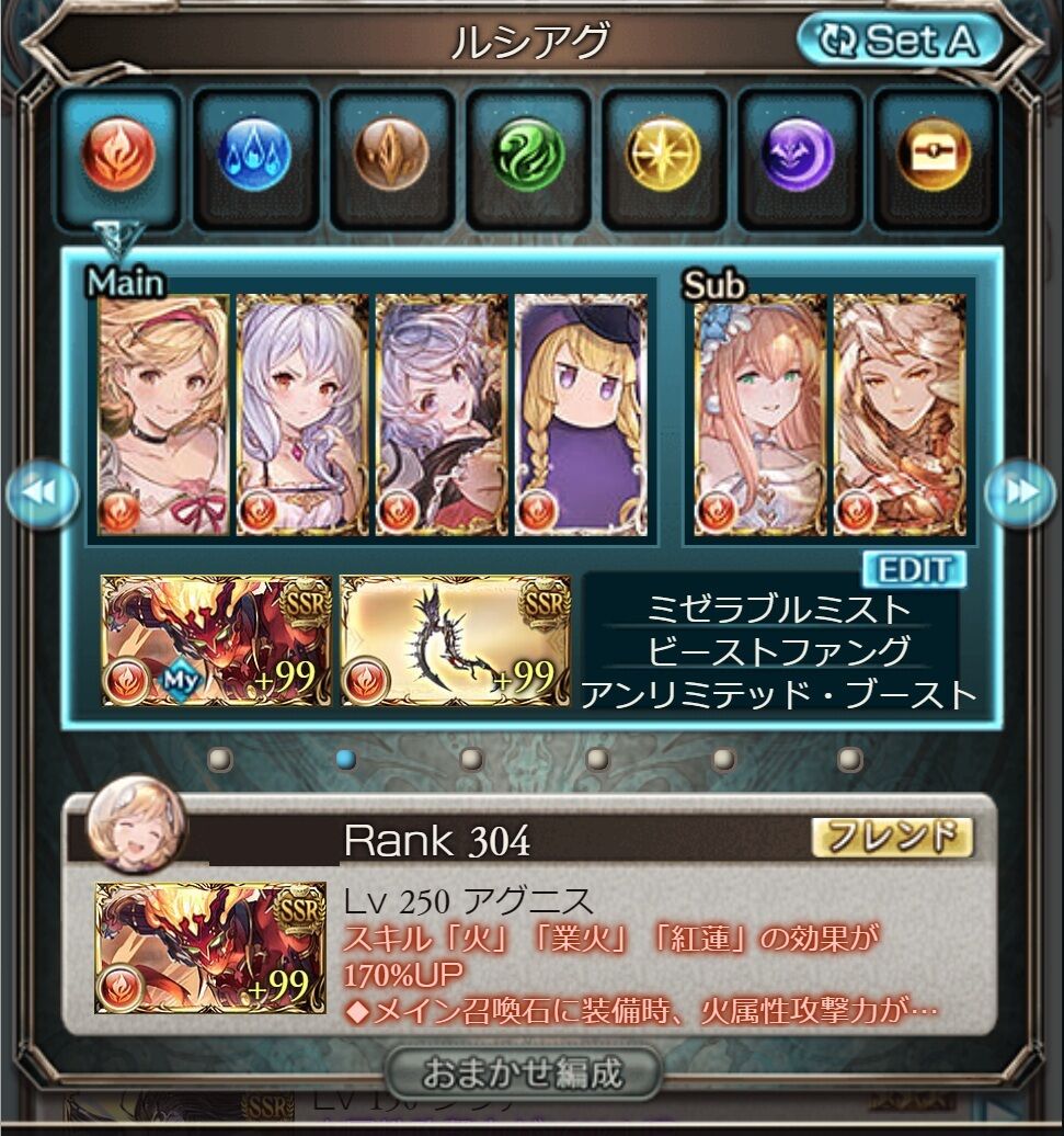 前回の編成からリミシャルをシャトラに入れ替え
