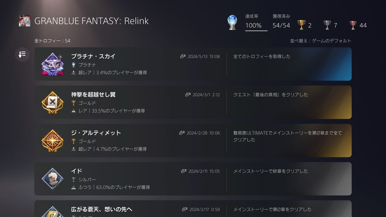 【トロフィー個別感想メモ】